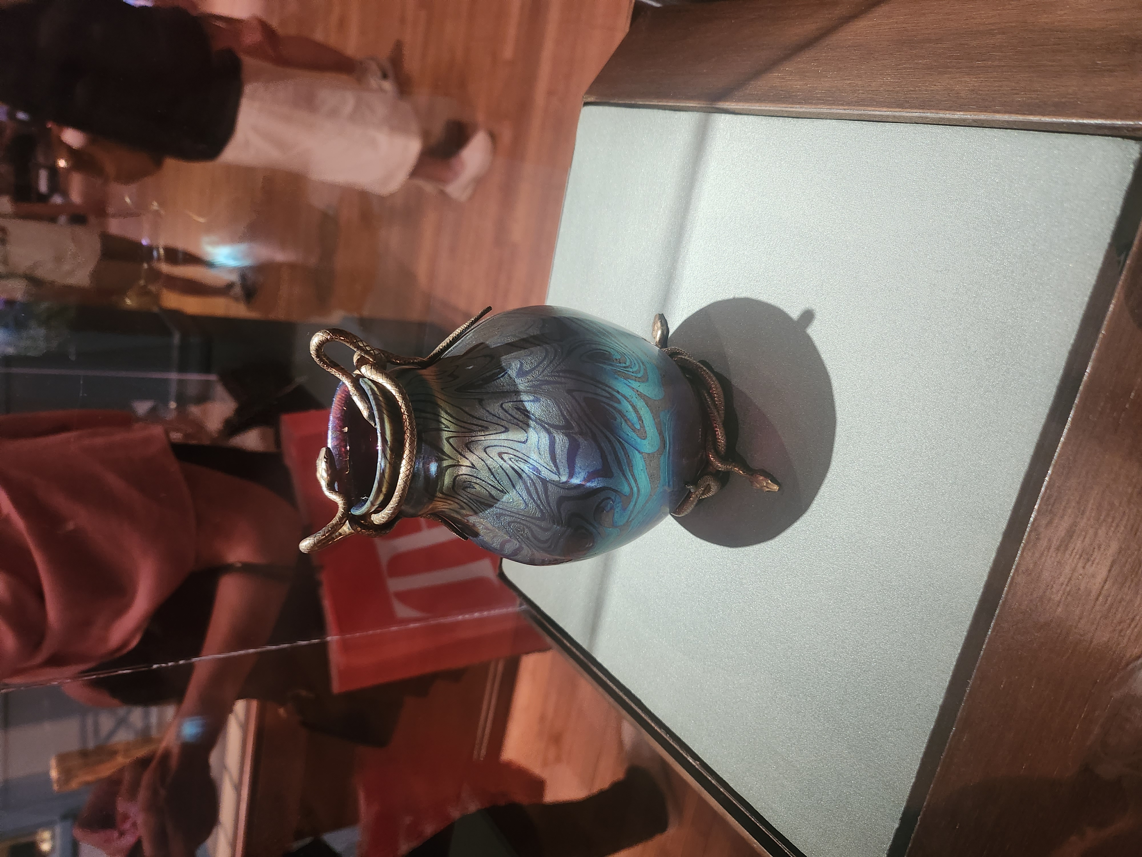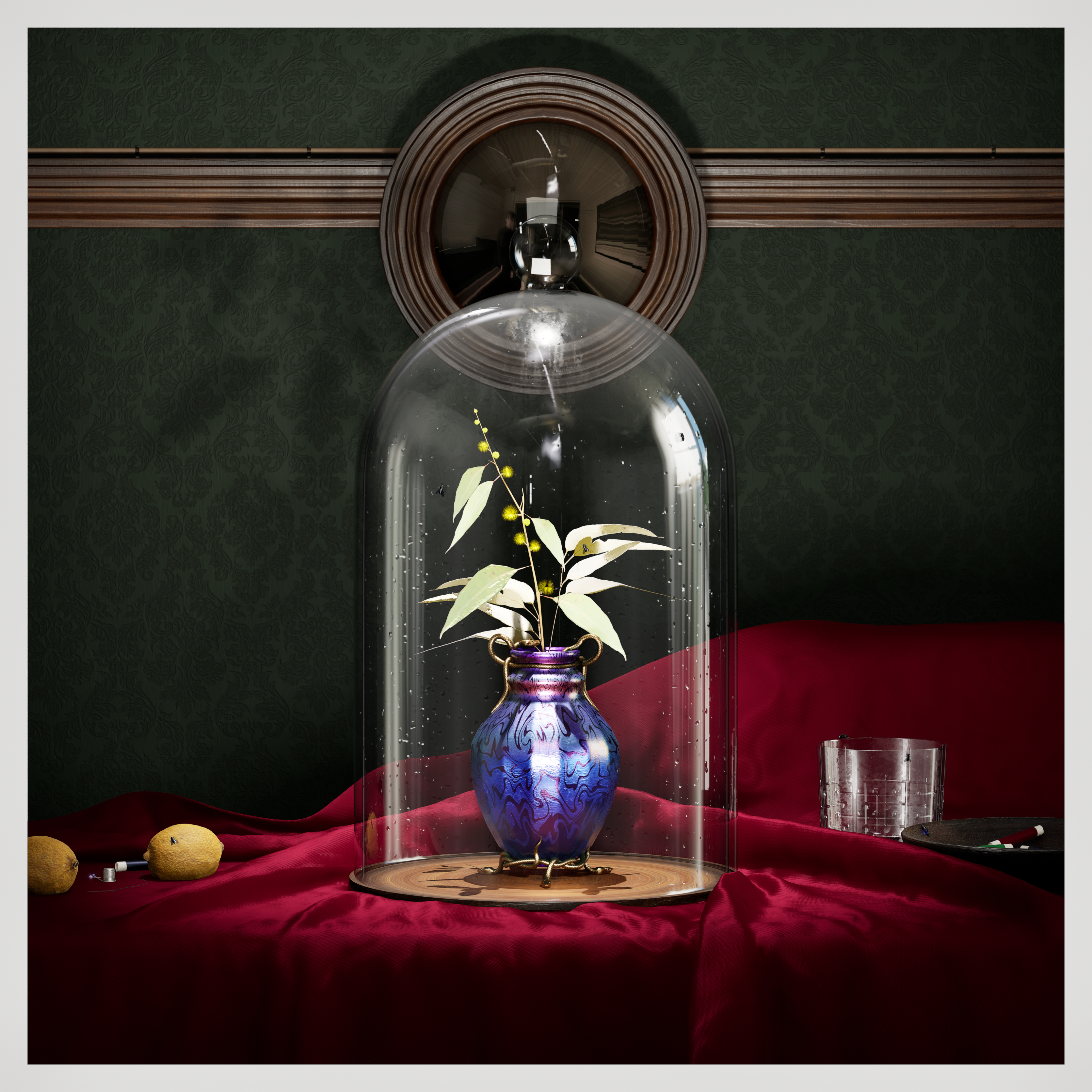 This project was also an opportunity to experiment with Unreal's new Substrate material framework, which supports advanced effects such as layering and multiple scattering, rough refraction, and glints. The vase with made of a material called 'Favrile glass', a Tiffanny Furnaces signature made by acid etching glass. This results in an incredibly unique (and beautiful) iridescent effect that shifts and changes with light and view angle, and a soft, speckly appearance.